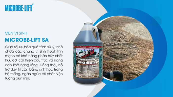 Chế phẩm vi sinh Microbe-Lift SA phân hủy chất hữu cơ, cải thiện cấu trúc và nâng cao khả năng lắng, giảm tình trạng bùn mịn, bùn lắng chậm.