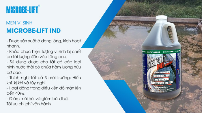 Microbe-Lift IND là sản phẩm cốt lõi của dòng men vi sinh môi trường với việc tập hợp hơn 13 chủng vi sinh vật hoạt tính mạnh gấp 5-10 lần vi sinh thông thường. Sản phẩm giúp tăng sinh bùn hoạt tính, tạo ra bông bùn lớn có thể lắng và làm trong nước, từ đó TSS cũng giảm theo một cách rất hiệu quả.