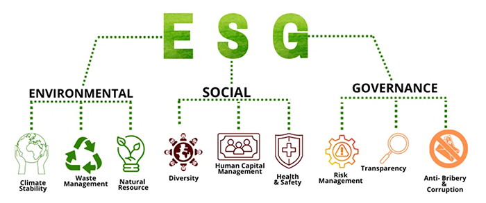 Yếu tố Môi trường trong ESG tập trung vào cách doanh nghiệp quản lý tác động đến khí hậu, sử dụng tài nguyên thiên nhiên, và xử lý chất thải. Yếu tố Xã hội đánh giá mối quan hệ của doanh nghiệp với nhân viên, khách hàng, nhà cung cấp và cộng đồng. Yếu tố Quản trị xem xét cấu trúc lãnh đạo, quyền cổ đông và tính minh bạch trong hoạt động.