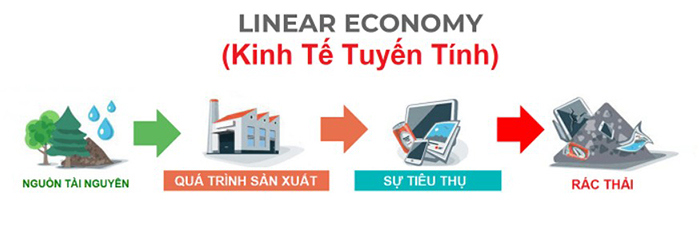 Kinh tế tuyến tính (Linear Economy) là mô hình kinh tế truyền thống, vận hành theo chu trình “khai thác – sản xuất – tiêu dùng – thải bỏ”. Trong mô hình này, tài nguyên thiên nhiên được khai thác để tạo ra sản phẩm. Những mặt hàng này được sử dụng một lần hoặc trong thời gian ngắn, rồi bị loại bỏ dưới dạng rác thải, hầu như không được tái sử dụng hay tái chế.