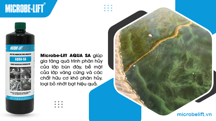 Men vi sinh xử lý nhớt bạt Microbe-Lift AQUA SA giúp gia tăng phân huỷ bùn đáy, bề mặt váng cứng và chất hữu cơ khó phân huỷ, từ đó loại bỏ nhớt bạt hiệu quả.