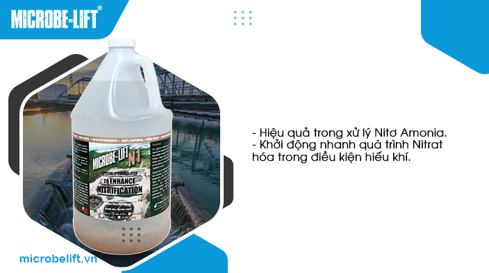 Microbe-Lift N1 là dòng vi sinh chuyên xử lý Nitơ Amonia, chứa 2 chủng vi sinh vật quan trọng là Nitrosomonas sp. (chuyển hóa N-Amonia thành N-Nitrit) và Nitrobacter sp. (chuyển hóa N-Nitrit thành N-Nitrat) giúp khởi động nhanh quá trình Nitrat hóa trong điều kiện hiếu khí.