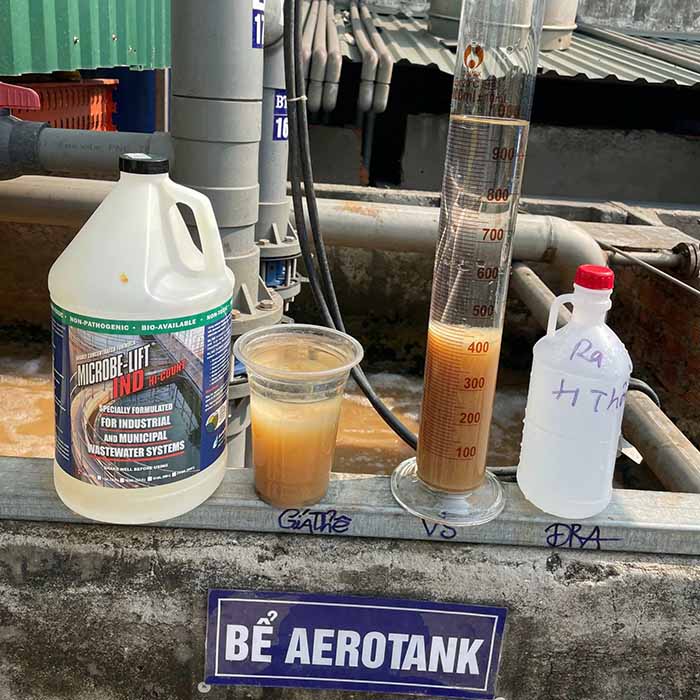 - Theo dõi nồng độ vi sinh bằng cách lấy mẫu bùn ở bể hiếu khí cho lắng 30 phút để quan sát chỉ số SV30.