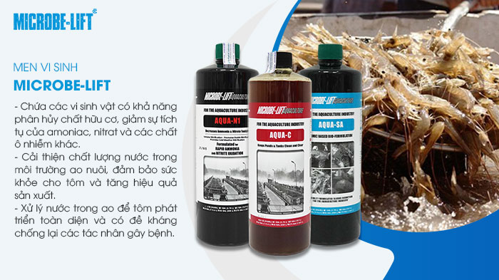 – Chế phẩm vi sinh xử lý nước ao nuôi tôm (Microbe-Lift AQUA C, AQUA SA, AQUA N1):