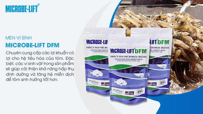 Microbe-Lift DFM là chế phẩm vi sinh đường ruột chuyên cung cấp các lợi khuẩn có lợi cho hệ tiêu hóa của tôm. Đặc biệt, các vi sinh vật trong sản phẩm này sẽ giúp cải thiện khả năng hấp thụ dinh dưỡng và tăng hệ miễn dịch để tôm sinh trưởng tốt hơn.