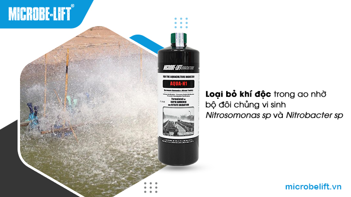Microbe-Lift AQUA N1 là sản phẩm hiếm có trên thị trường tích hợp thành công bộ đôi vi khuẩn Nitrosomonas sp (chuyển hóa Ammonia (NH4) thành Nitrit (NO2)) và Nitrobacter sp (tiếp tục chuyển hóa Nitrit (NO2) thành Nitrat (NO3)), nhờ đó loại bỏ khí độc trong ao hiệu quả, giảm thiệt hại và rủi ro do khí độc.