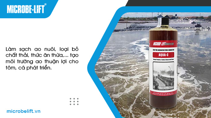 Microbe-Lift AQUA C là sở hữu đến 13 chủng vi sinh chuyên biệt với vai trò làm sạch ao nuôi, loại bỏ chất thải, thức ăn thừa,… tạo môi trường ao thuận lợi cho tôm, cá phát triển. Vi sinh từ thương hiệu Microbe-Lift được phân lập, nuôi cấy dạng lỏng, có hoạt động mạnh gấp 5-10 lần vi sinh thường, nhờ vậy hiệu quả làm sạch vượt trội, nhất là với các ao nuôi mật độ cao.