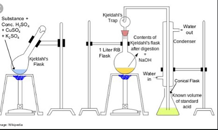Phương pháp Kjeldahl – một kỹ thuật phân tích hóa học đã được phát triển từ năm 1883 bởi nhà hóa học người Đan Mạch Johan Kjeldahl, được dùng để xác định TKN thường gồm các bước: phân hủy mẫu bằng Axit Sulfuric đậm đặc, chuyển toàn bộ Nitơ hữu cơ và Urê thành dạng Amoni, sau đó đo hàm lượng Amoni thu được. Xem chi tiết: Xác định hàm lượng Nitơ với phương pháp Kjeldahl>>>
