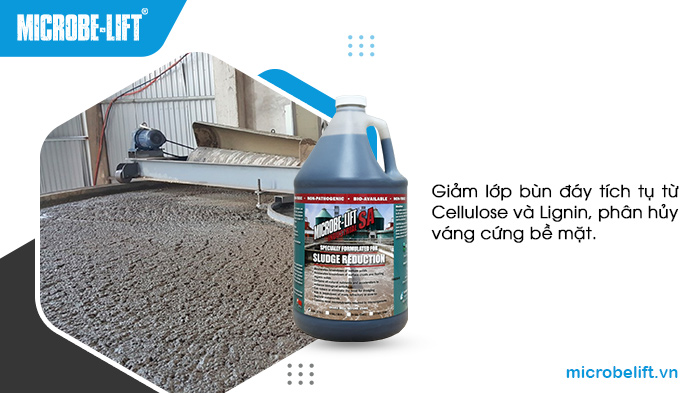 Sản phẩm đặc biệt hiệu quả trong việc giảm lớp bùn đáy tích tụ từ Cellulose và Lignin, phân hủy váng cứng bề mặt. Microbe-Lift SA tăng thể tích hữu dụng của bể chứa, giảm tần suất nạo vét và bảo trì.